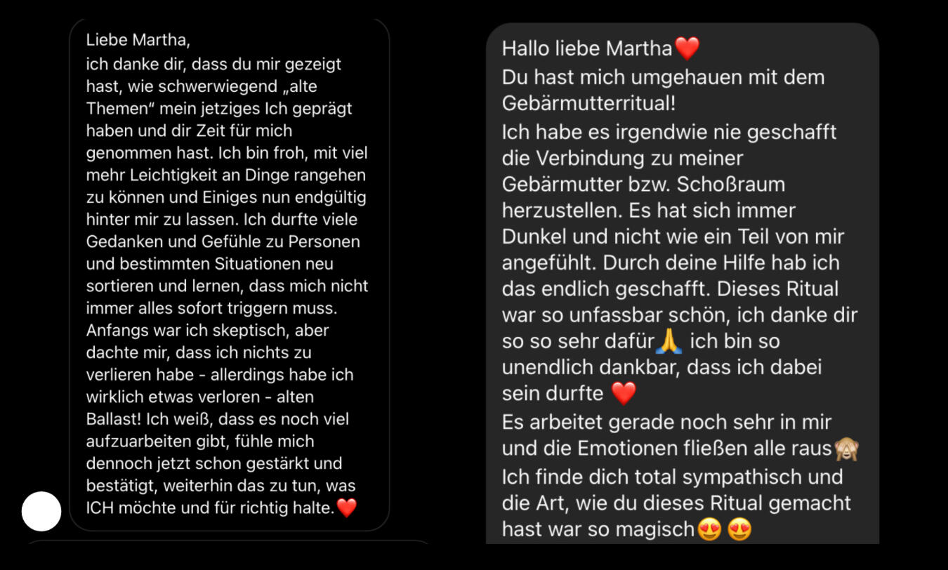 GEBÄRMUTTERRITUAL im Kreis deiner AhnenIn dieser energetischen Gebärmutterreinigung fokussieren wir uns auf Blockaden im Energiefluss deiner weiblichen Ahnenlinie. Im Kreis deiner Ahnen kannst du diese auf die höchste Weise lösen, damit du dein Leben freier leben und deinen Seelenweg selbstbestimmter gehen kannst.